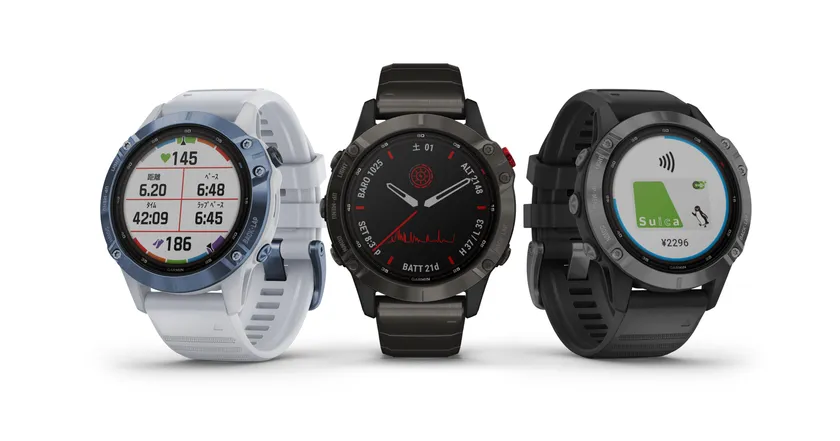 左から「fenix 6S Pro Dual Power」「fenix 6 Pro Dual Power」「fenix 6X Pro Dual Power」