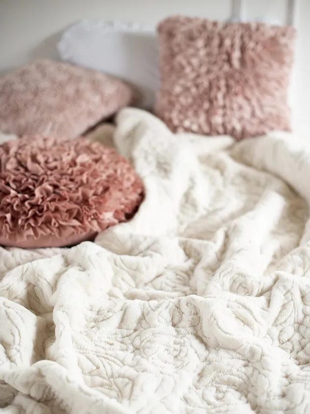 明るく優しいローズ・カラーに包まれて眠りについたら、薔薇色の幸せな夢が見られるかも。
