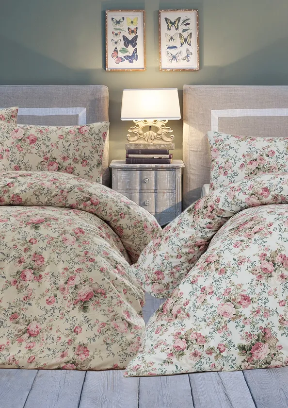 アンティーク・ローズ模様を全面にあしらったデュベカバーを、催事と阪急オンラインの両方で販売。