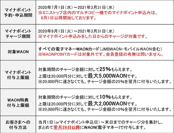 申し込み後から2021年3月31日までの対象期間中チャージ金額に対し、マイナポイントは最大25%・WAON特典は最大10%をWAONへ付与※2します。