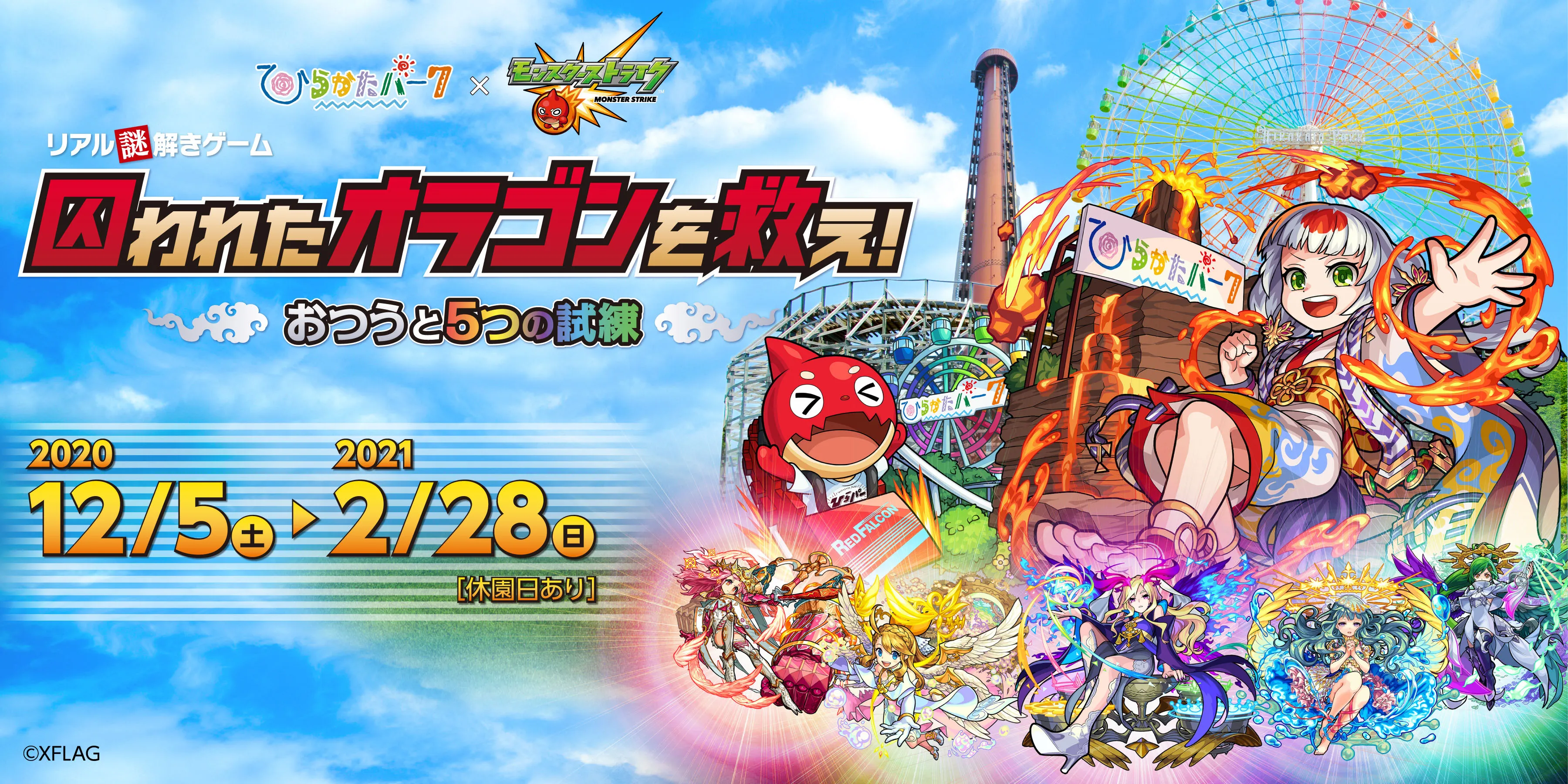 ひらかたパーク(枚方市枚方公園町1-1)では、人気スマホアプリ「モンスターストライク(以下、モンスト)」とコラボレーションしたリアル謎解きゲーム「囚われたオラゴンを救え!~おつうと5つの試練~」を2020年12月5日(土)より開催します。