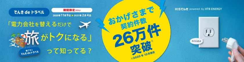 HTBエナジー株式会社(本社:福岡県福岡市、代表取締役社長:赤尾 昇平、以下 HTBエナジー)と、株式会社エイチ・アイ・エス(本社:東京都港区、代表取締役会長兼社長:澤田 秀雄、以下 HIS)は、HTBエナジーが展開する電気料金プラン「たのしいでんき」の新プランである、「でんきdeトラベル」(以下、本プラン)を新たに加えました。