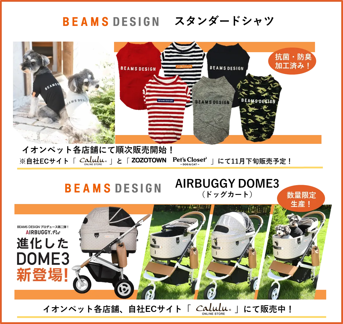 『BEAMS DESIGN』プロデュースのドッグシャツ・ドッグカートが新発売! ECサイト「Calulu ONLINE STORE」やイオンペットにて限定販売!