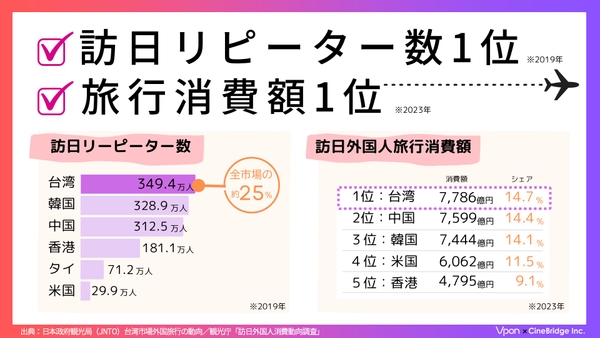 株式会社シネブリッジ(東京都港区、代表取締役:谷 智樹以下シネブリッジ)とVpon JAPAN株式会社(東京都新宿区、代表取締役:篠原 好孝以下Vpon JAPAN)は、訪日台湾観光客向けに効果的なプロモーションを実現する「シネアド+デジタル広告パッケージ」の提供を開始しました。