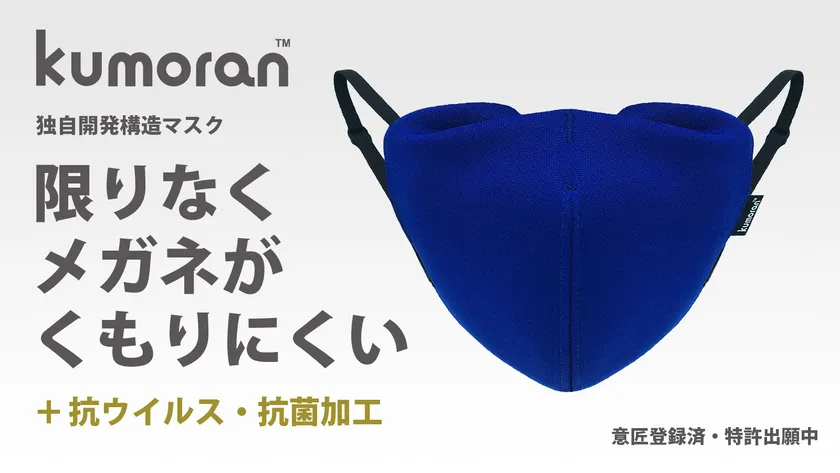 そもそもkumoranマスクとは、メガネがくもらない(くもらん)マスクということから名付けられたマスクです。メガネがくもらない形状は独自開発で意匠取得済み(特許申請中)の新規性が高いアイデア商品です。素材、デザイン、仕様など細部にまでこだわりが見られ、注目のマスクです。