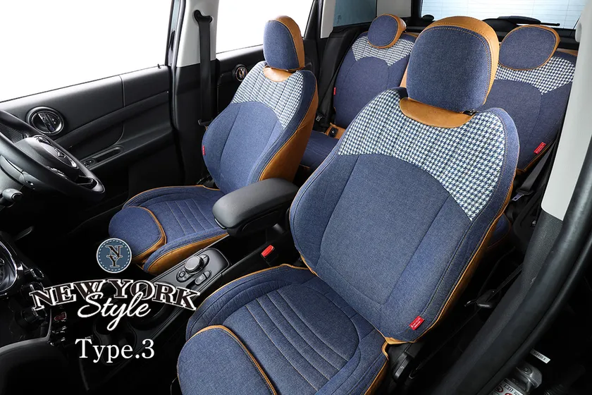 その都市からインスピレーションを得て誕生したのが、このNEW YORK Styleシートカバーです。普段、私たちが服を選んで自己表現するように、乗る車にもオシャレを取り入れてほしい。“シートカバーとファッションの融合”をテーマに、デニム生地、革、ハリスツイードという素材に着目し、シートカバーの開発に挑戦しました。