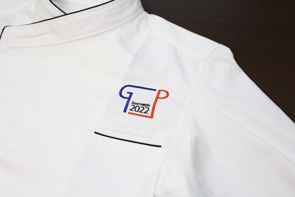 選手のモチベーションアップのため、また、全国大会へ出場した証として、グルメピックのロゴマーク入りオリジナルコックコートを選手に配布しています。全国大会出場者はこちらを着用して動画撮影に臨みます。