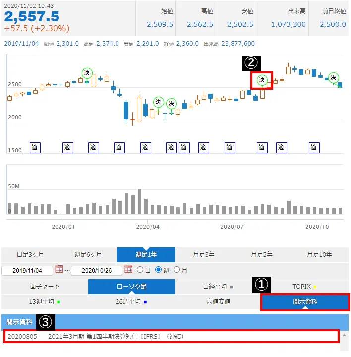 1. 右下「開示資料」のボタンを押す