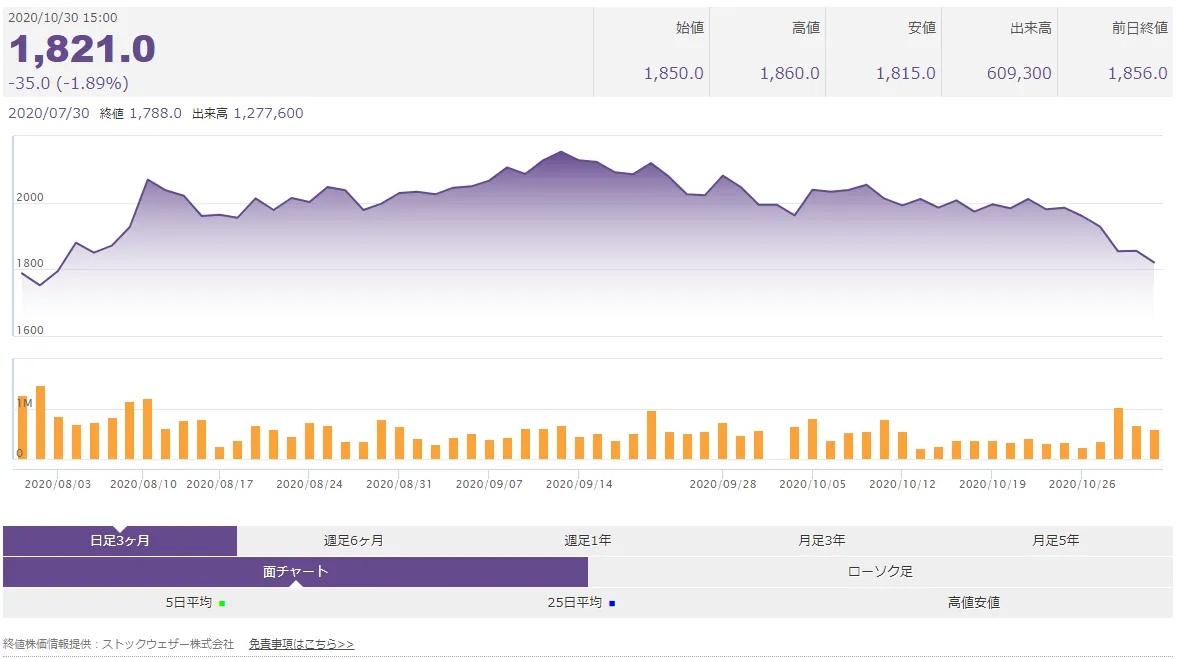 2020年10月から終値株価情報提供のサービス拡充として、終値株価チャート(有償)の提供がスタートしました。