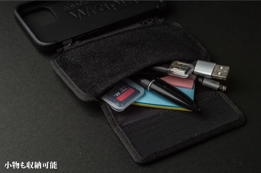 Wrapupなら通常のiPhoneケースでは収納できない小物類までまとめて収納することができます。