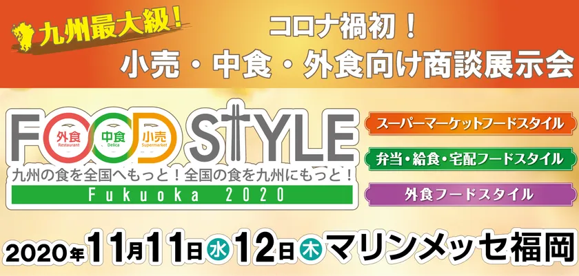 FOOD STYLE実行委員会(所在:東京都港区、運営:株式会社イノベント)は2020年11月11日・12日に小売・中食・外食業態の「FOOD STYLE 2020 in Fukuoka」(スーパーマーケットスタイル、弁当・給食・宅配フードスタイル、外食フードスタイル)を開催いたします。コロナ禍で失われた多くの商談の機会を望む出展者が「新しい生活様式」により、変化したニーズに対応すべく、これまでの業態への新商品発表の場や新業態へ参入を目的とし業界の回復・活性化を図るため過去最多の585社が会場に集結します。