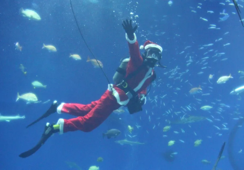 出会いの海の大水槽では、サンタクロースの衣装を身にまとった「サンタダイバー」が登場いたします。