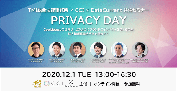 【12月1日開催】TMI総合法律事務所×CCI×DataCurrent共催無料オンラインセミナー 『PRIVACY DAY ~Cookielessの世界は、どのようにブランドにインパクトを与えるのか 個人情報保護法改正を踏まえて~』を開催