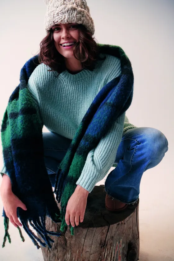 トレンドカラーの「ヘザーグレイ」と「バーガンディー」はホリデー 2020 コレクションを一新し、ファジーなバーガンディーとアメリカンイーグルのアイコンアイテムであるクルーネックトップスを合わせることで、フレッシュで遊び心のあるスタイルを演出します。エフォートレスでリラックスなスタイルは日常のアクティビティに最適です。