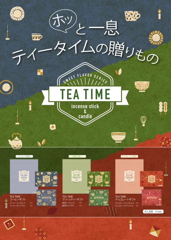 それに伴いお線香、ローソクも従来の香りではなくもっと生活に寄り添った香りが必要と考え「ティータイムシリーズ」を開発しました。