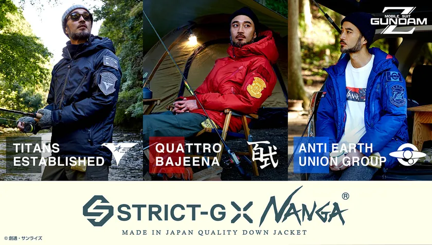バンダイ公式ショッピングサイト「プレミアムバンダイ」( http://p-bandai.jp/?rt=pr )では、ガンダムの世界観を取り入れたアパレルショップ「STRICT-G(ストリクト ジー)」より、高品質なダウンを扱うダウンシュラフ・メーカー NANGA(ナンガ)と『機動戦士Zガンダム』とのコラボモデルダウンジャケット全3種『機動戦士Zガンダム』35周年記念 エゥーゴモデル/ティターンズモデル/クワトロ・バジーナモデル(各61,600円 税込/送料・手数料別途)、及びTシャツ1種(6,380円 税込/送料・手数料別途)、シュラフポーチ1種(3,850円 税込/送料・手数料別途)を発売します。2020年11月14日(土)からの「STRICT-G」各店舗での販売に先立ち、2020年11月6日(金)13時からバンダイ公式ショッピングサイト「プレミアムバンダイ」内「STRICT-G Online Store」( http://p-bandai.jp/strict-g/?rt=pr )にて先行予約を開始します。