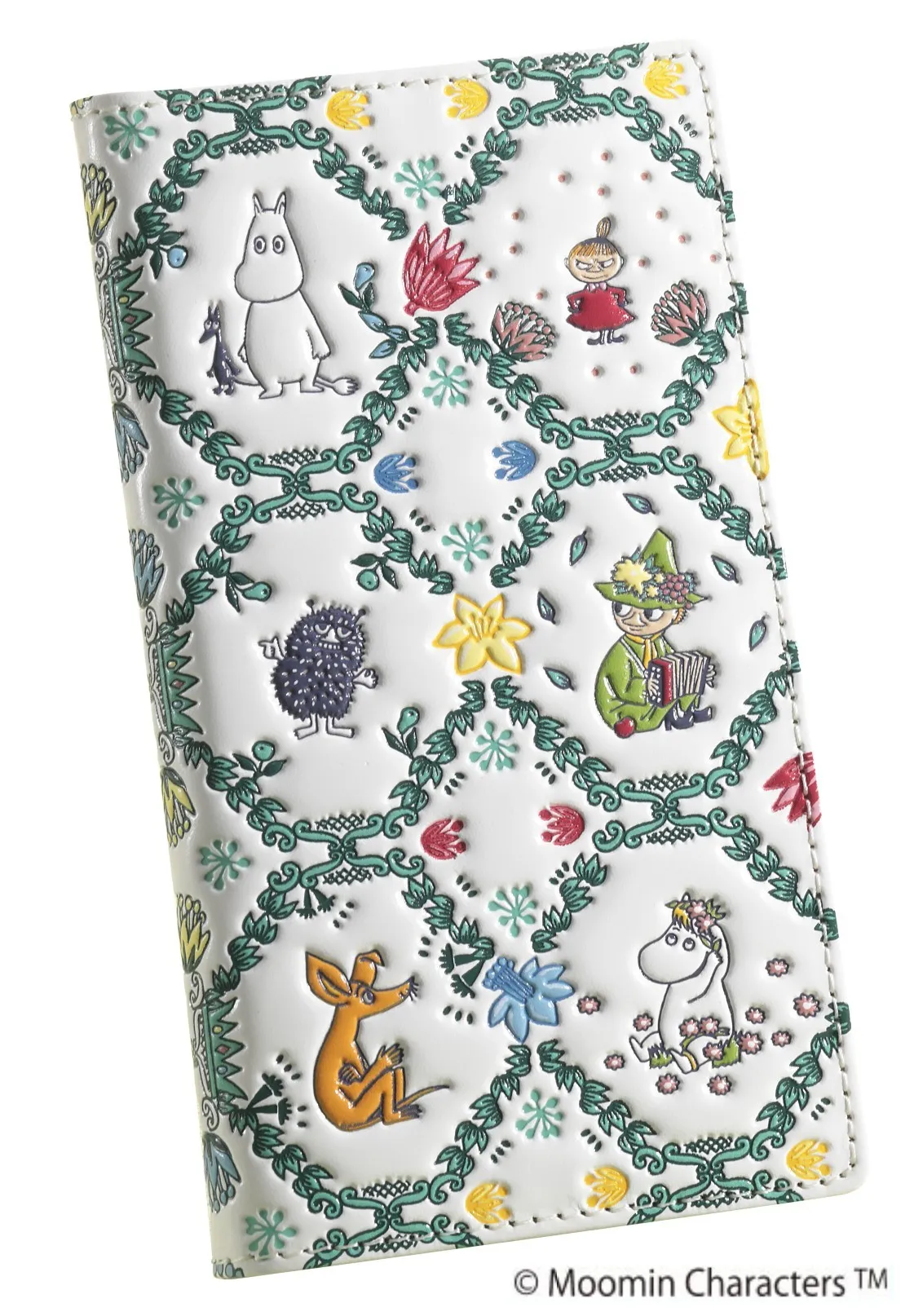 播州姫路特産の白革に、色鮮やかな友禅染め。 「ムーミン谷の仲間たち 浅草文庫 牛革製スマホケース」新発売です!