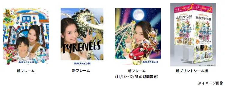 ホテル志摩スペイン村のゲームコーナーにプリントシールの新機種を導入します。インスタ映えで人気のサンタクルス通りや人気のアトラクションなど、ここだけのデザインがされた新フレーム全10種を搭載。志摩スペイン村のキャラクターや景観を背景に、旅の思い出の一枚をぜひ撮影してください。