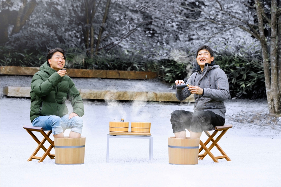 【星野温泉 トンボの湯】信州の地酒とおつまみを足湯に添える温泉サービス 冬季限定「ひとり占め足湯」を提供|期間:2021年11月15日~2022年2月28日