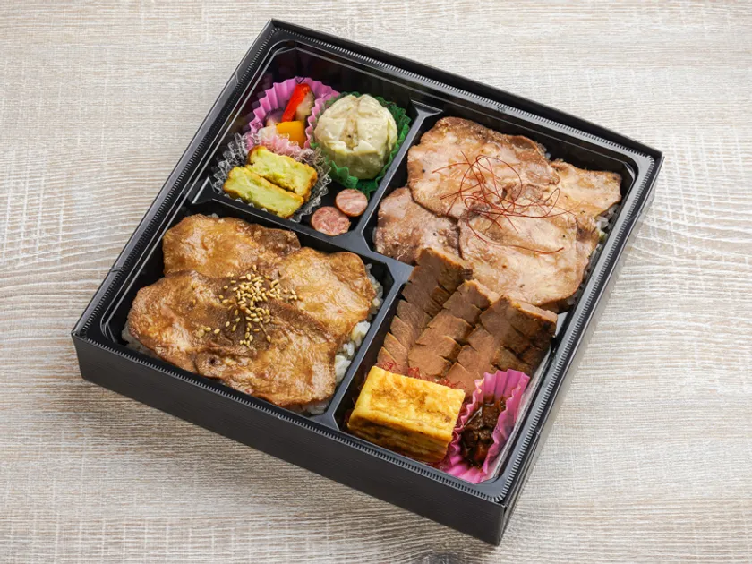 手仕込した厚切牛たん、薄切り牛たん焼たれ味と塩だれ味の3種類の食べ比べが出来る幕の内弁当です。