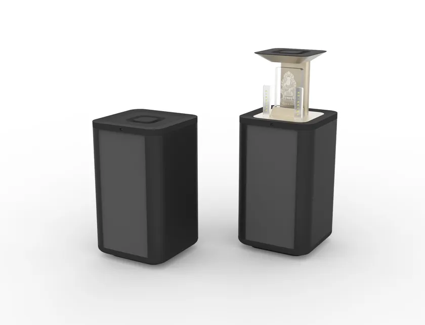 身近でインテリア・空間に溶け込むデザインでありつつも、仏壇と呼ぶにふさわしい“上質な佇まい”を目指して、素材選びから見直しました。設計の耐久性にもこだわり、いっそう末永くお使いいただける仏壇を実現していきます。センサーを活用したモダンなUIは、「仏前で手を合わせる」という行為を、より身近で自然なものにしてくれます。