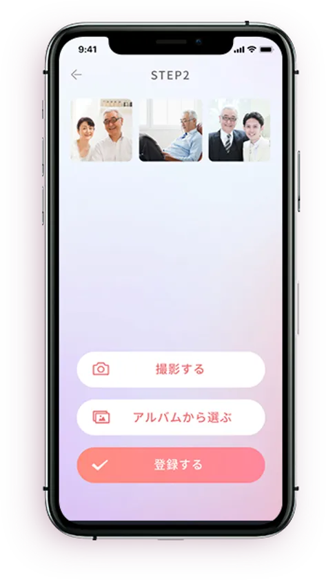 1. 専用アプリで、遺影写真を好きなだけ簡単に登録でき、Wi-Fiで本体に同期