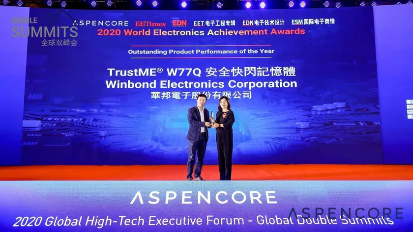半導体メモリソリューションの世界的大手サプライヤーであるウィンボンド・エレクトロニクス株式会社は2020年11月9日、TrustME(R)W77QセキュアフラッシュメモリがASPENCOREアナリストと世界中のユーザーコミュニティによって選ばれる2020 ASPENCORE World Electronics Achievement Awards(WEAA)に選出され、「年間最優秀製品賞」を受賞したことを発表しました。