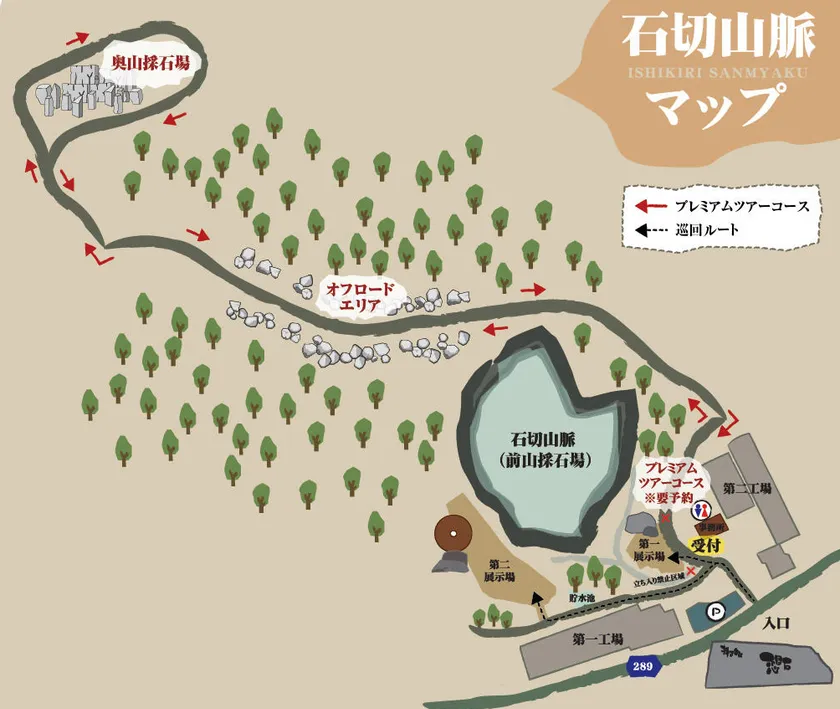 ※一般入場料で前山採石場(採石場跡、地図にない湖など)と