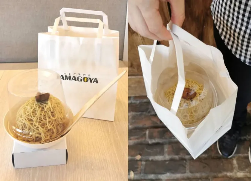 テイクアウトの際はフタ付きのカップを使用して、紙袋に入れてお渡しします。