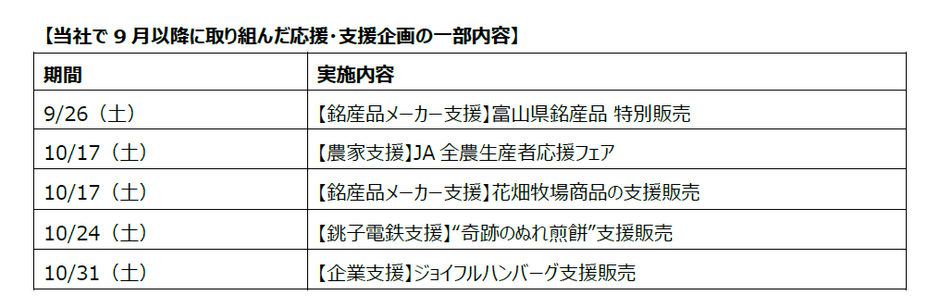 この取り組みをきっかけに新たな繋がりが生まれ、支援の輪が広がっております。引き続き日本各地の魅力ある商品の販売を通じ応援・支援させていただくとともに、お客様においしい商品をお楽しみいただけるよう取り組んでまいります。