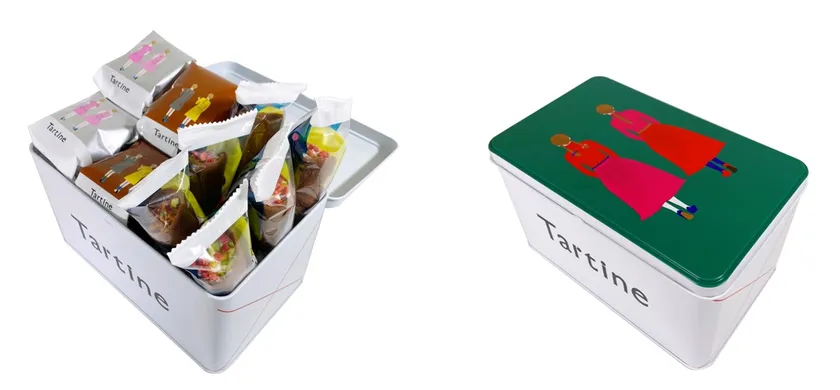 ブランド名の由来は「タルト」と「ツイン」でタルティン。女性の大好きなお菓子“タルト”を中心に、タルティン姉妹が四季折々のお菓子の世界を創っています。クリスマスの装いになったタルティン姉妹のボックスにお菓子を詰め合わせたクリスマス商品は、この時期だけのお楽しみ。また公式Instagramでは、新商品やブランド情報、先行受付などの様々な情報を今後発信してまいります。