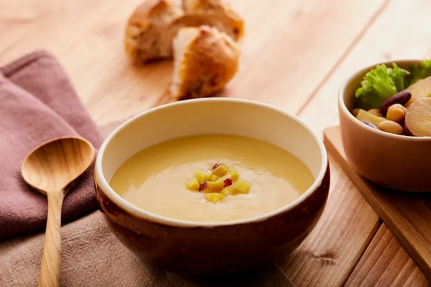 約2ヶ月間低温熟成させた宮城県産「伊達娘さつまいも」を使用 まるでスイートポテトのような贅沢なポタージュ
