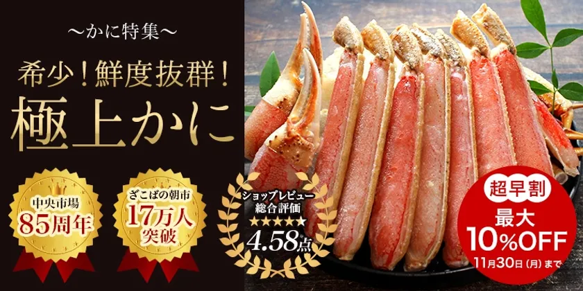 年末・お正月に!こだわり極上特大「生ズワイガニ」発売 「ざこばの朝市オンラインショップ」だけのオリジナル開発商品