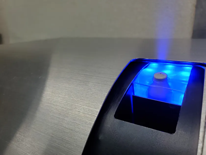 本製品はプロトタイプであり、発売時期が現状未定(2021年1月予定)ですが、量産に向けて動いております。ノズルタイプの特徴は、多彩な除菌液に対応可能ということです。通常時は間欠運転にて空間噴霧を行っております。所定の位置に人が立つと音声ガイダンスがはじまり衣服、足元、手荷物などに除菌液を噴霧いたします。ガイダンス終了とともに人が位置から離れると間欠運転に戻ります。ありそうでない、出入口用の自動噴霧装置です。