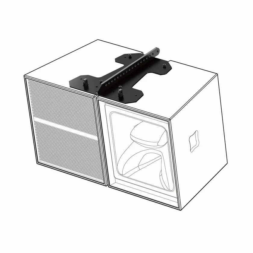 バーチカルフライングクレードル「CP-XY1VC1」、またはデュアルエンクロージャーフライングプレート「CP-XY1DF1」を用いることで、天井の低い会場で単体設置や水平連結設置をすることができます。