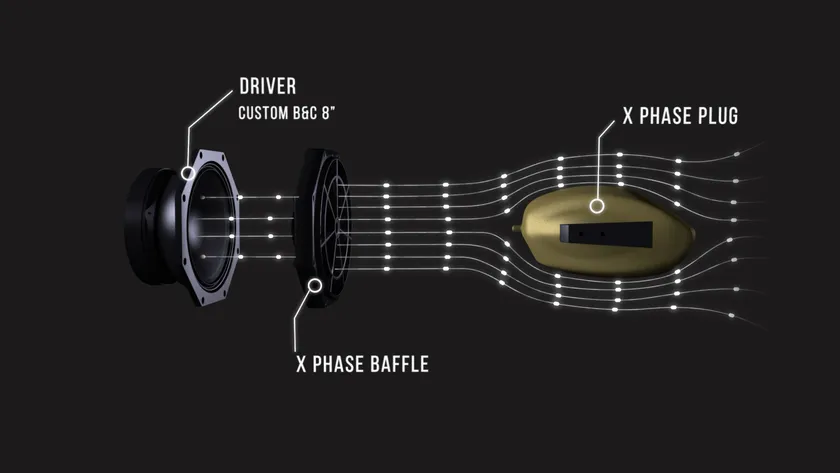 8インチの中域ネオジムコーンドライバーと1インチの高域ネオジムコンプレッションドライバーは、奥行方向を揃えて配置されており、クロスオーバー周波数付近の位相干渉を軽減しています。また、高域ホーンを中域ホーン内部でつなげることにより、物理的にセパレートされた一般的なホーン構造よりも高域と中域の音のつながりが向上しています。
