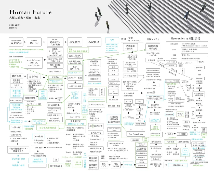 オウンドメディアでは、世界システムに対する同時的・クロスセクショナル的な俯瞰分析と、世界の歴史の変遷から考究される時系列分析、またそれらを組み合わせた、山崎が曼荼羅図と呼んでいる全体像もダウンロードできます。是非、オウンドメディアにアクセス頂き、その全貌をご理解いただければと思っています。