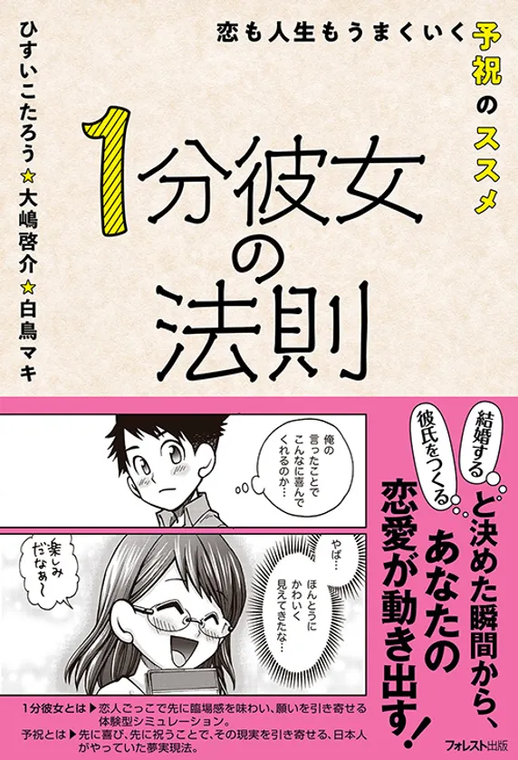 そんな不安な時代にふと寂しさを感じた時、支え合える彼氏やパートナーがいればと思うことがあるでしょう。『1分彼女の法則』は、これまで仕事もプライベートも劇的な変化を遂げた、予祝という考え方を恋愛・結婚にも応用できることから、予祝恋愛編として出版されました。