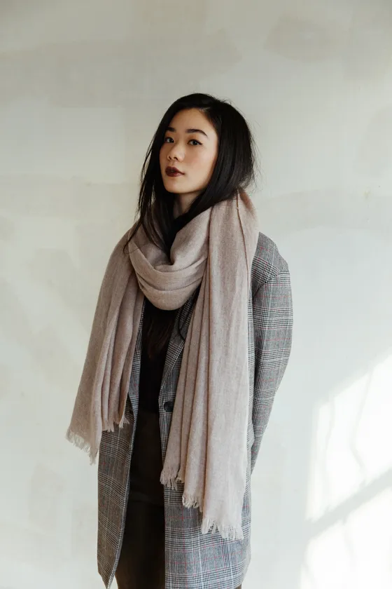 ここまで大きいストールは一般的には市場に出回っておらず、また一般的なカシミヤストールと比べればそのボリュームの差は歴然です。