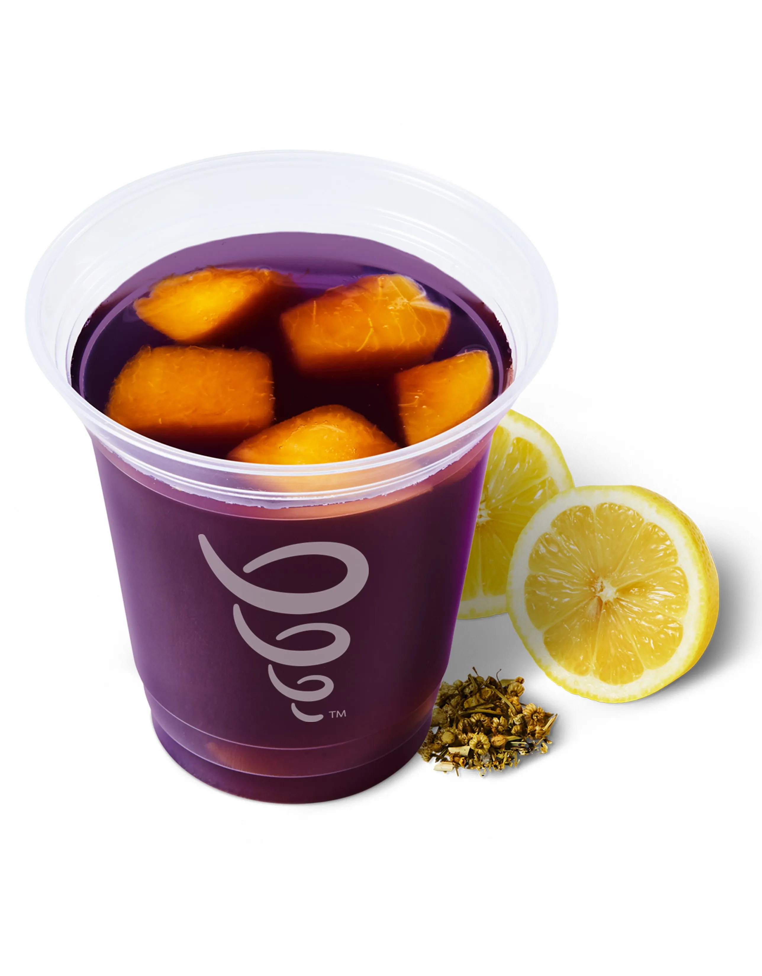 パイナップル、レモネードのミックスジュースにバタフライピー、レモングラス、カモミールをブレンドした茶葉をあわせスチーム抽出した新感覚のフルーツティー。目を引く鮮やかな紫色をした「マジカルバイオレット」は、パイナップルとピーチのフルーツの甘味とレモネードジュースのレモンの爽やかな酸味、2つの風味が楽しめます。