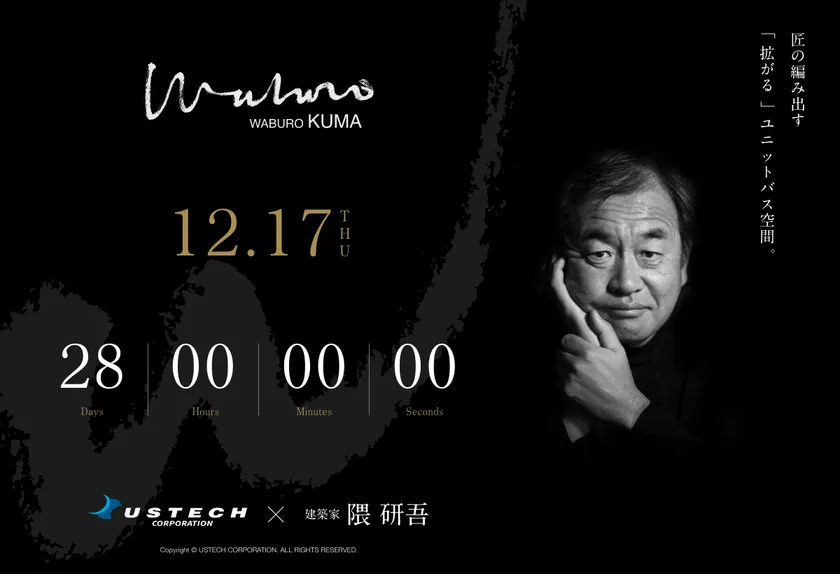 和デザイン浴槽の株式会社アステック、和の大家と言われる 建築家 隈 研吾 氏と提携し、新概念「拡張」ユニットバス 「WABURO KUMA」(ワブロクマ)を開発、12月17日に発表
