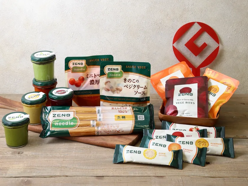 まるごと野菜とオリーブオイルだけで作った「ZENB PASTE」、まるごと野菜に雑穀・ナッツを加えた「ZENB STICK」、一食分の野菜117gが一袋で摂れる「ZENB VEGE BITES」、豆100%で、豊富な食物繊維と植物性たんぱく質の新主食「ZENB NOODLE」、ZENB NOODLE との相性を考え抜いたこだわりのソース「ZENB SAUCE VEGE」も販売しています。