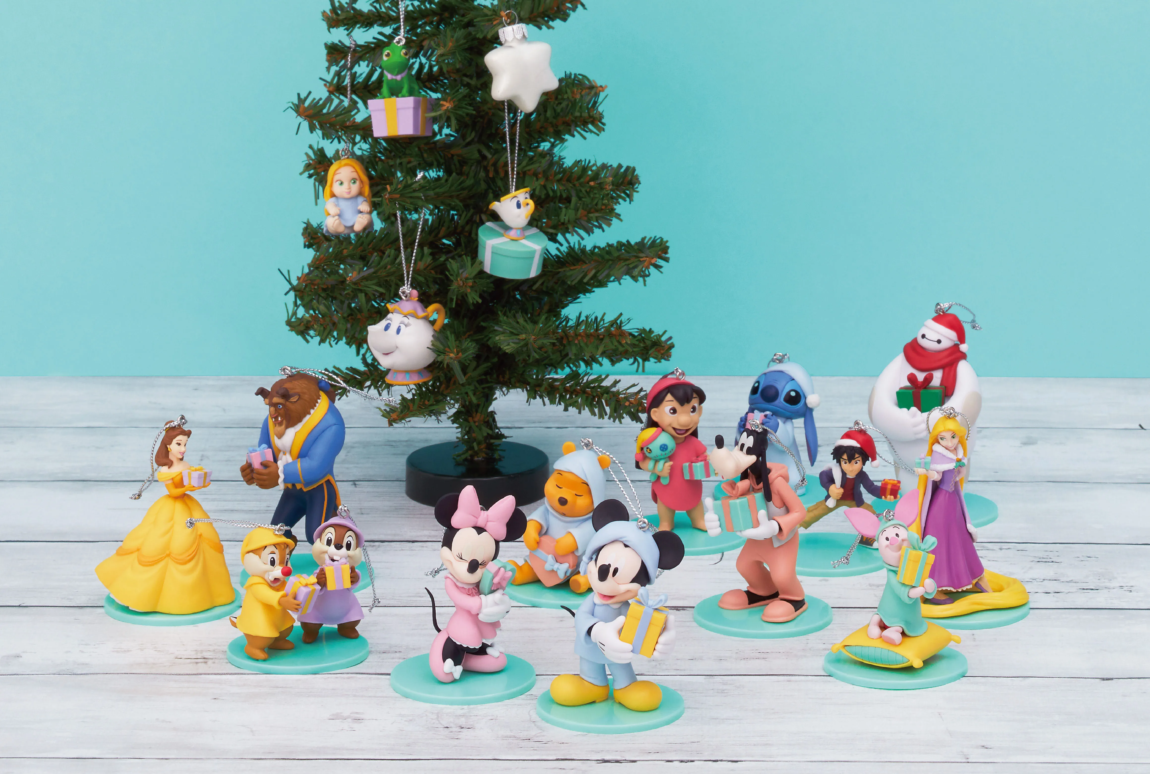 今年のコンセプト「クリスマスドリーム」をイメージして描き下ろしたオリジナルイラストがフィギュアになってファミリーマート、GEO、その他ホビーショップに登場します。全20種類のオーナメントフィギュアや、各キャラクターシリーズが一度に揃うスペシャルコンプリートBOX、3種のスノードーム、そしてラスト賞にはクリスマスカラーのミッキーマウスの大きなぬいぐるみ(全高約40cm)をご用意いたしました!キャラクターラインナップには、おなじみのミッキーマウスやくまのプーさんたちに加え、今年話題のキャラクターを多数起用!今年10周年を迎える『塔の上のラプンツェル』や、『美女と野獣』と『ベイマックス』のキャラクターたちが登場します。