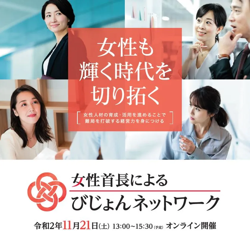 日本全体で女性の活躍を後押しするため、全国の女性首長と経営者による会議「第2回女性首長によるびじょんネットワーク(通称:びじょネット)」を令和2年11月21日(土曜日)に開催します。