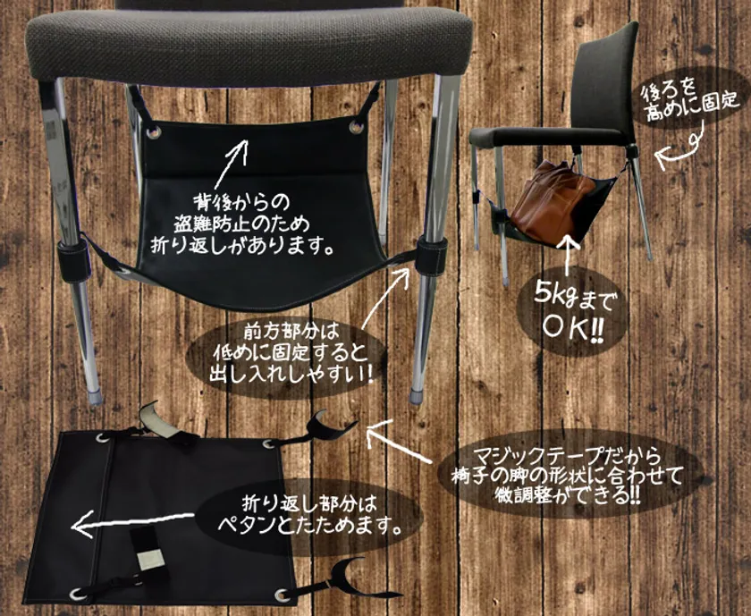 カフェやアウトドア、学校でもとシーンに合わせ鞄の置き場に困らない 椅子用の鞄置きBAGMOCK(バッグモック)生地が抗菌仕様になり登場
