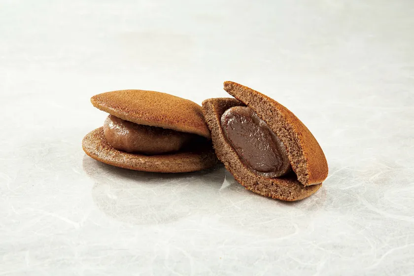 ベルギー産チョコレートのガナッシュを求肥で包み、チョコ味のどら皮ではさみました。