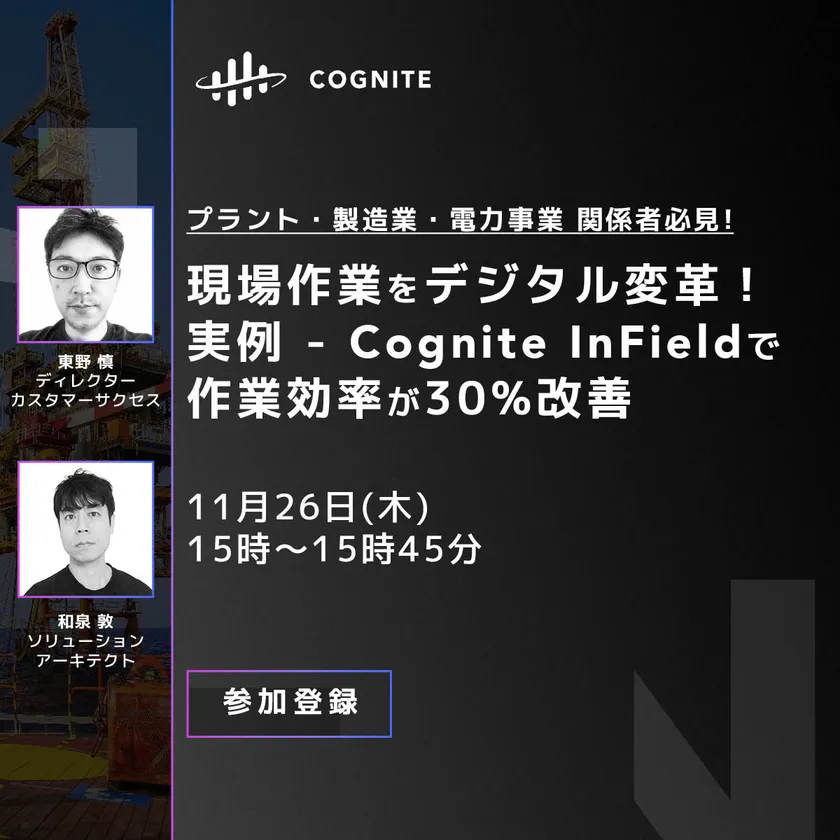 現場作業をデジタル変革!プラント・製造・電力事業関係者向け 実例付きWebセミナーを11月26日開催 ~Cognite InFieldでDXを推進 作業員がより活躍できる方法~