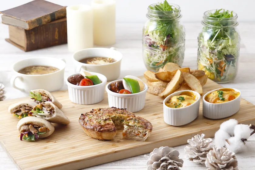 下段では、「鴨スモーク&人参のオレンジマリネ」や「キノコとカブのマリネ」などのオードブルがお目見え。思わず写真を撮りたくなるフォトジェニックなボックスです。