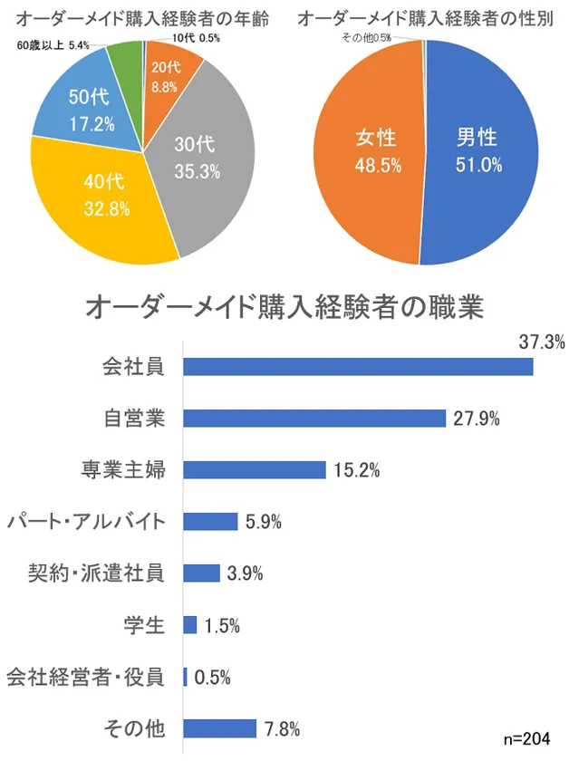 調査の結果、500人中204人と、4割以上が「オーダーメイドでの購入経験あり」と回答しました。