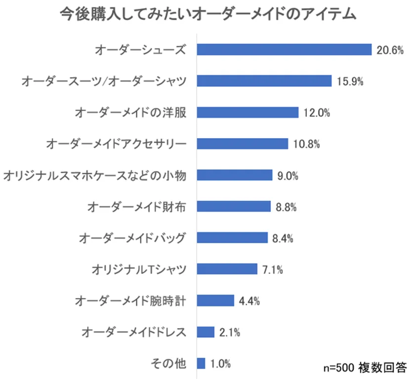 最後に500人全員に「今後購入してみたいオーダーメイドのアイテム」を聞いてみました。